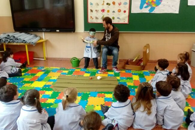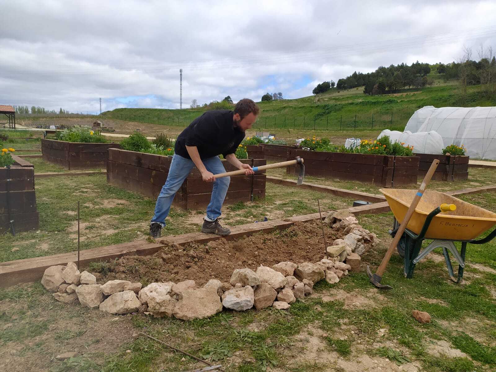 Otro proyecto importante de la asociación, el de los huertos escolares, me parece muy valioso. Me siento cada vez más lleno de admiración por Azucena, que lleva a cabo estos talleres de manera tan dinámica, divertida y creativa. No era siempre fácil saber cómo contribuir en estos talleres los primeros meses pero poco a poco mi español mejoró bastante para poder presentar cosillas ante una clase. ¡Cuando lo hice por primera vez fue un momento muy enriquecedor y gratificante! No solo los huertos escolares me dan la oportunidad de conocer muchos colegios de Burgos, también el proyecto “Pio Pio” sobre la gallina castellana negra lleva mucha alegría a los niños cuando aprenden en las charlas sobre este animal tan curioso, y aún más cuando ven nacer los pollitos. Se ponen incluso incubadoras en estas escuelas para hacer más visible la maravilla de la vida que nace. Acompañar y asistir a Paola en este proyecto es un placer, por su energía, su apoyo, sus ideas, su humor… Hay que mencionar también las experiencias increíbles que podemos vivir con Maria en las actividades de horticultura terapéutica.